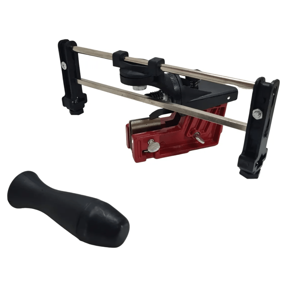 - Marca: Toyama (Acessório Original). - Tipo: Afiador Manual de Precisão. - Lima Inclusa: 3/16 (4,8 mm). - Compatibilidade: Universal (Stihl, Husqvarna, Toyama, Branco, etc.). - Material: Estrutura em metal e polímero reforçado. - Ajustes: Regulagem de ângulo lateral e profundidade de afiação. - Função: Mantém dentes com dimensões e ângulos uniformes.